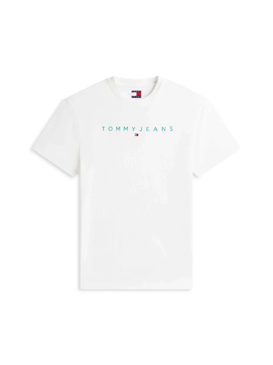T-SHIRT BIANCA-VERDE TOMMY JEANS CON LOGO LINEARE DA UOMO