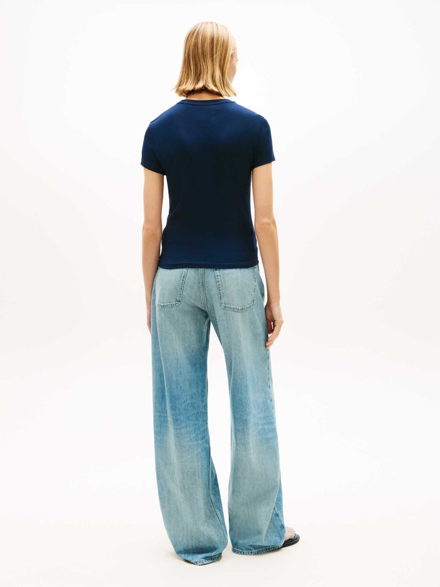 La T-shirt da donna Tommy Jeans è un capo essenziale della collezione Primavera/Estate, pensato per chi ama uno stile pulito e contemporaneo. Il design minimalista è arricchito dal logo lineare Tommy Jeans sul petto, che conferisce un tocco distintivo e autentico al tuo outfit.