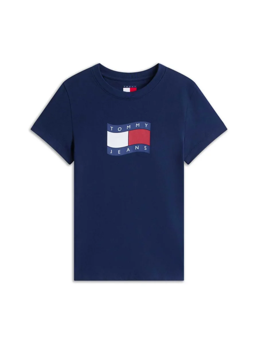 T-SHIRT BLU TOMMY JEANS CON STEMMA BANDIERA DA DONNA