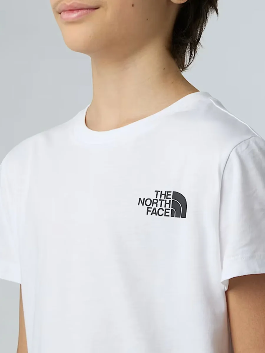 La T-shirt Box NSE firmata The North Face è un capo essenziale della collezione primavera/estate per ragazzi. Realizzata in 100% cotone, offre una vestibilità standard che garantisce comfort durante le attività quotidiane. Il design presenta il logo Box NSE sul petto e una stampa grafica sul retro, aggiungendo un tocco distintivo al look.