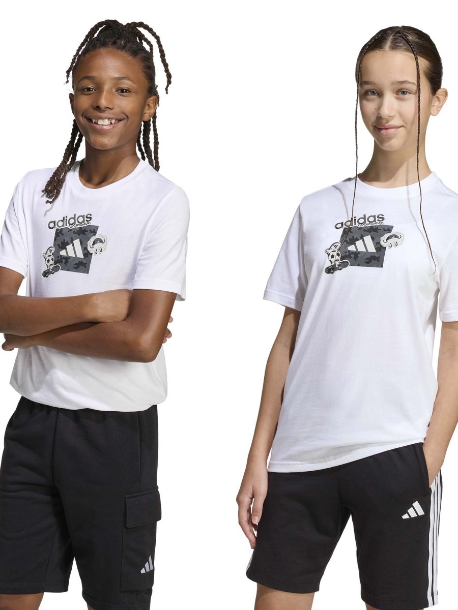 La T‑shirt Adidas per bambina/ragazza unisce comfort, stile e praticità, diventando un capo essenziale per la stagione primavera/estate. Realizzata in morbido cotone traspirante, garantisce freschezza e libertà di movimento durante giochi, attività sportive leggere o momenti di svago all’aperto. Il design è impreziosito da una stampa camouflage “Camo Train” moderna e originale, mentre il logo Adidas frontale aggiunge un dettaglio distintivo e autentico del marchio. La vestibilità regolare e il girocollo classico assicurano comfort in ogni situazione.