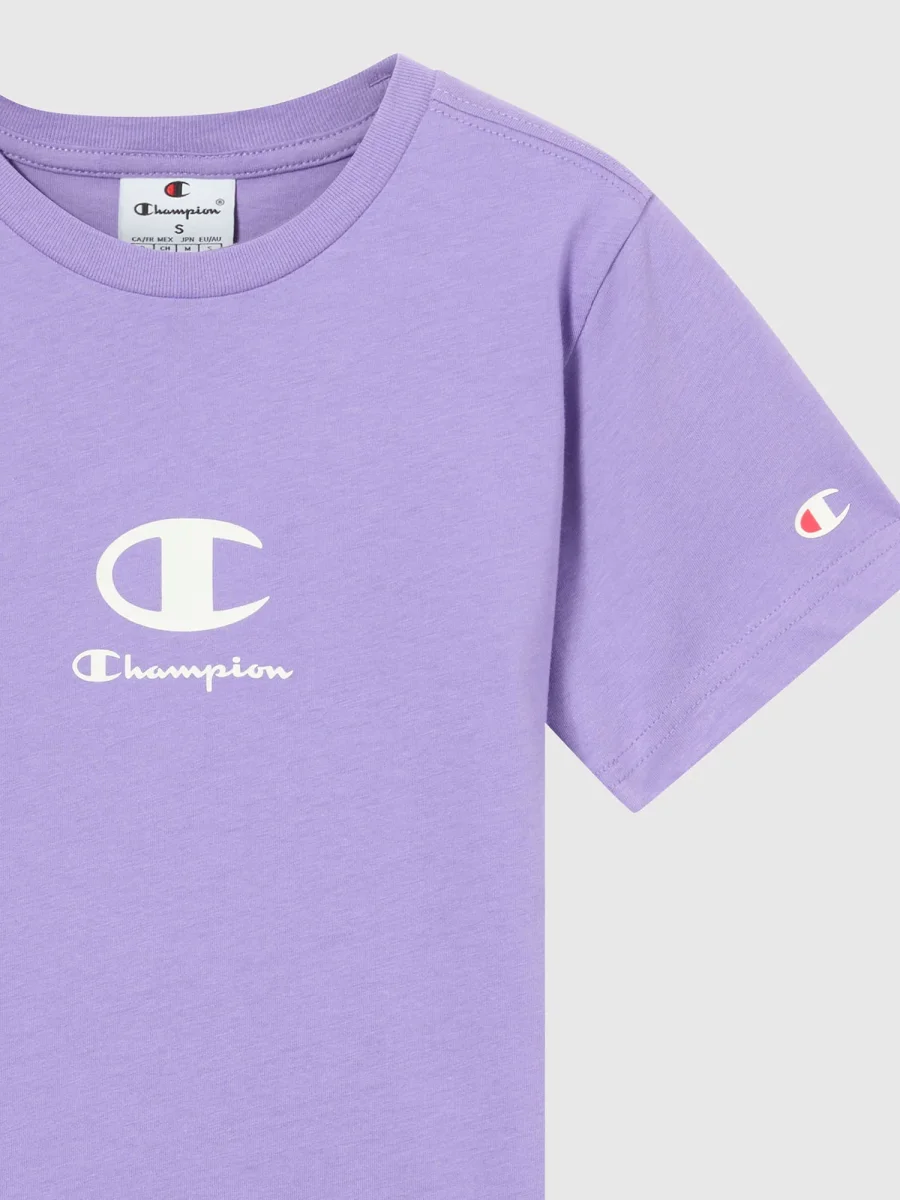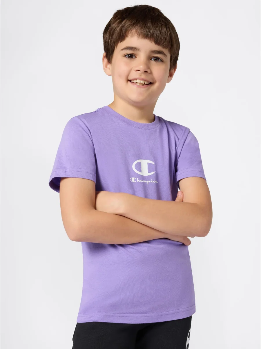 Perfetta per la stagione autunno/inverno, questa T-shirt Champion Junior è realizzata in puro cotone morbido e traspirante. Il taglio girocollo classico e la vestibilità regolare la rendono un capo versatile, facile da abbinare a look sportivi o casual. Il logo Champion completa il design con un tocco autentico e riconoscibile.