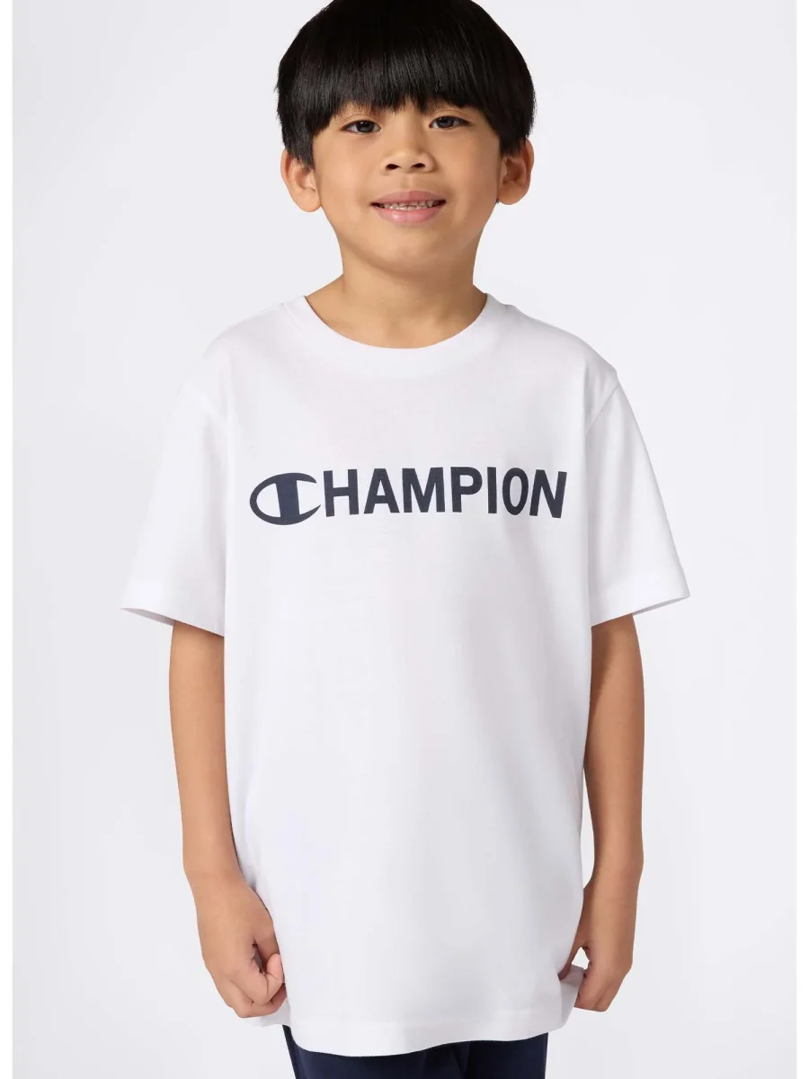 T-SHIRT GIROCOLLO CON LOGO CHAMPION DA BAMBINO BIANCO