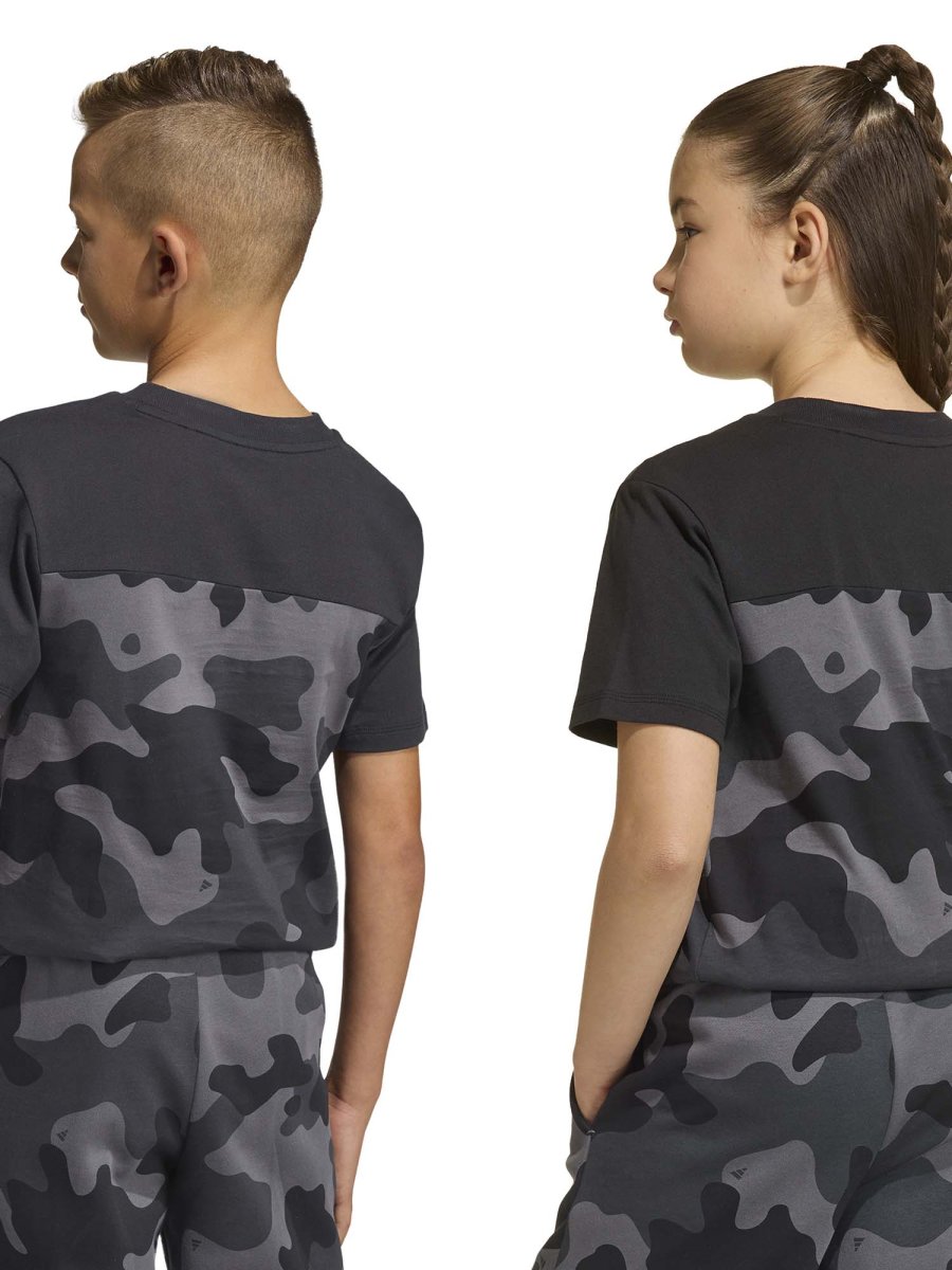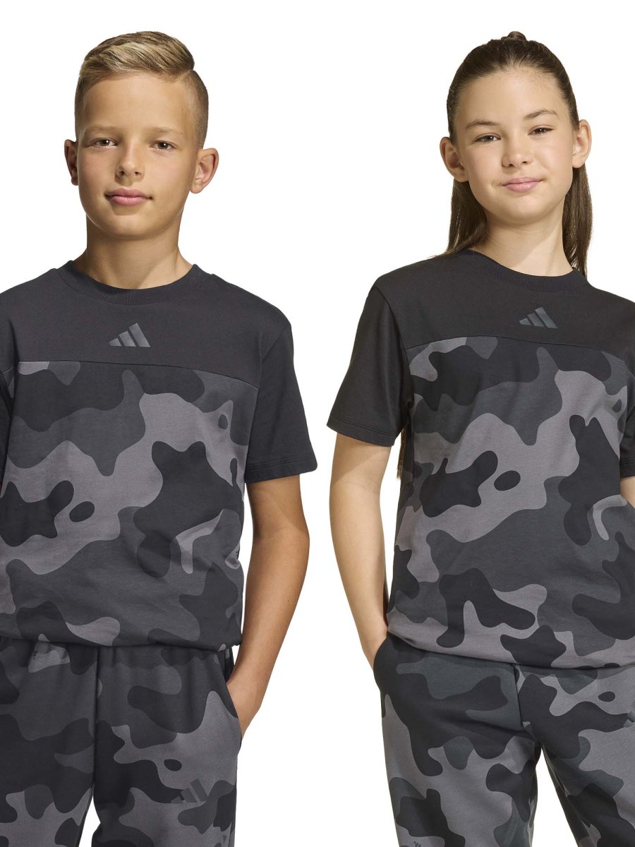 La T‑shirt Adidas junior unisex unisce comfort, stile e praticità, diventando un capo essenziale per la stagione primavera/estate. Realizzata in 100% cotone morbido e traspirante, assicura libertà di movimento e freschezza durante giochi, sport o attività all’aperto. Il design presenta una stampa camouflage moderna, mentre il logo Adidas frontale aggiunge un tocco distintivo e autentico. Il girocollo classico e la vestibilità regolare garantiscono comodità in ogni situazione