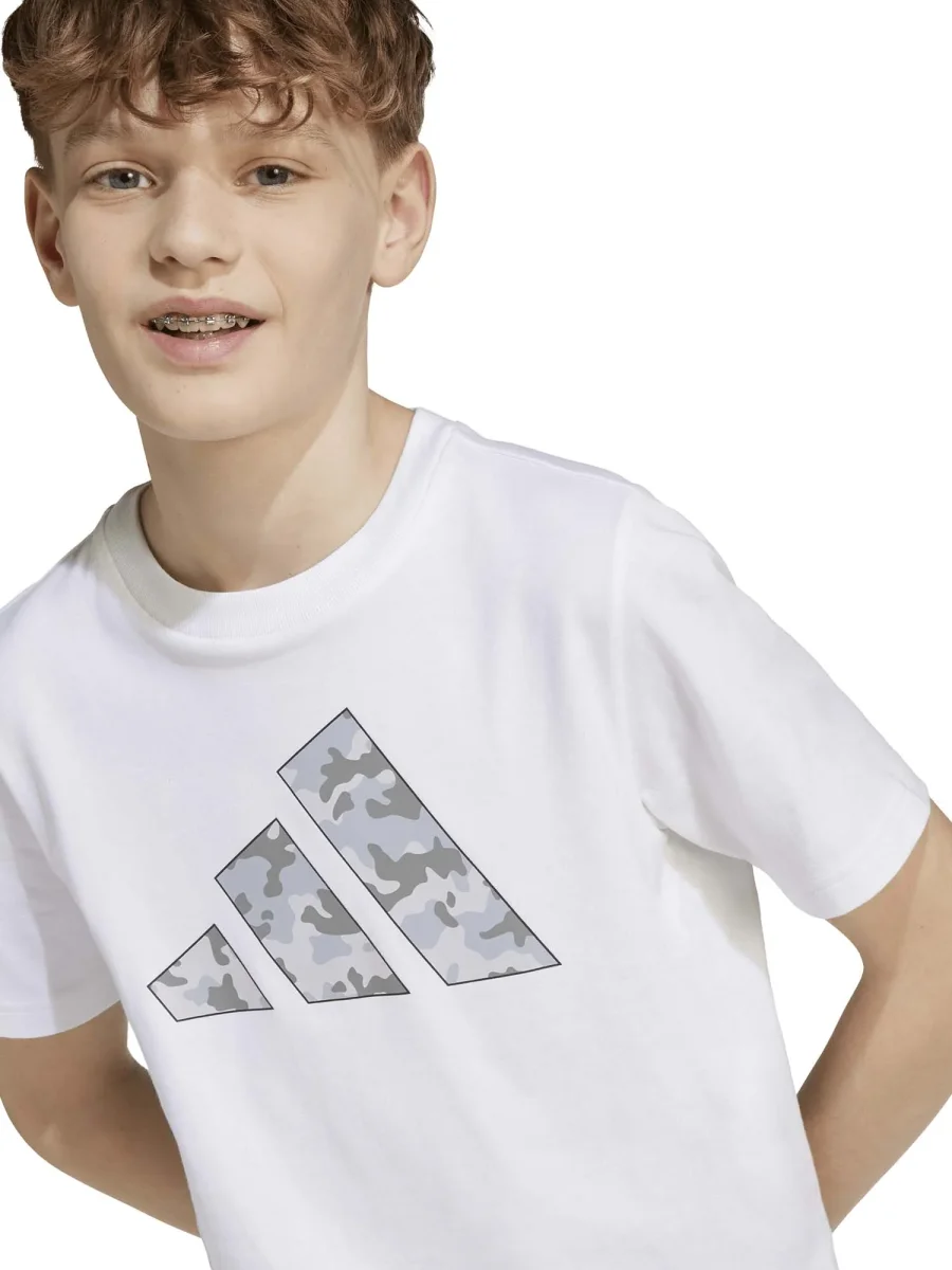 Con un logo in stile mimetico, questa t-shirt Adidas per ragazzi della collezione primavera/estate, evoca un senso di furtività e avventura. Realizzata in morbido cotone, offre una vestibilità regolare, perfetta per ogni attività. Facile da abbinare a pantaloncini, pile, jeans o pantaloni da ginnastica, è l’ideale per un look versatile e comodo, adatto a ogni occasione.