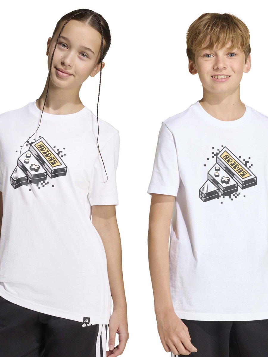 La T-shirt junior adidas J Game è pensata per i più giovani che vogliono unire stile sportivo e comfort durante le giornate di scuola, gioco o tempo libero. Realizzata in cotone morbido e traspirante, garantisce una sensazione piacevole sulla pelle e una vestibilità regolare che permette completa libertà di movimento. Il girocollo a coste assicura una calzata stabile, mentre la grafica frontale ispirata al mondo gaming aggiunge un tocco moderno e distintivo che valorizza qualsiasi outfit casual.