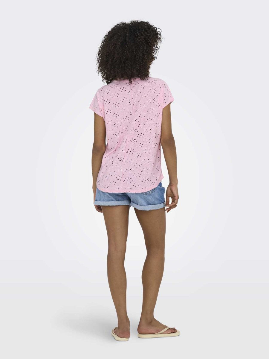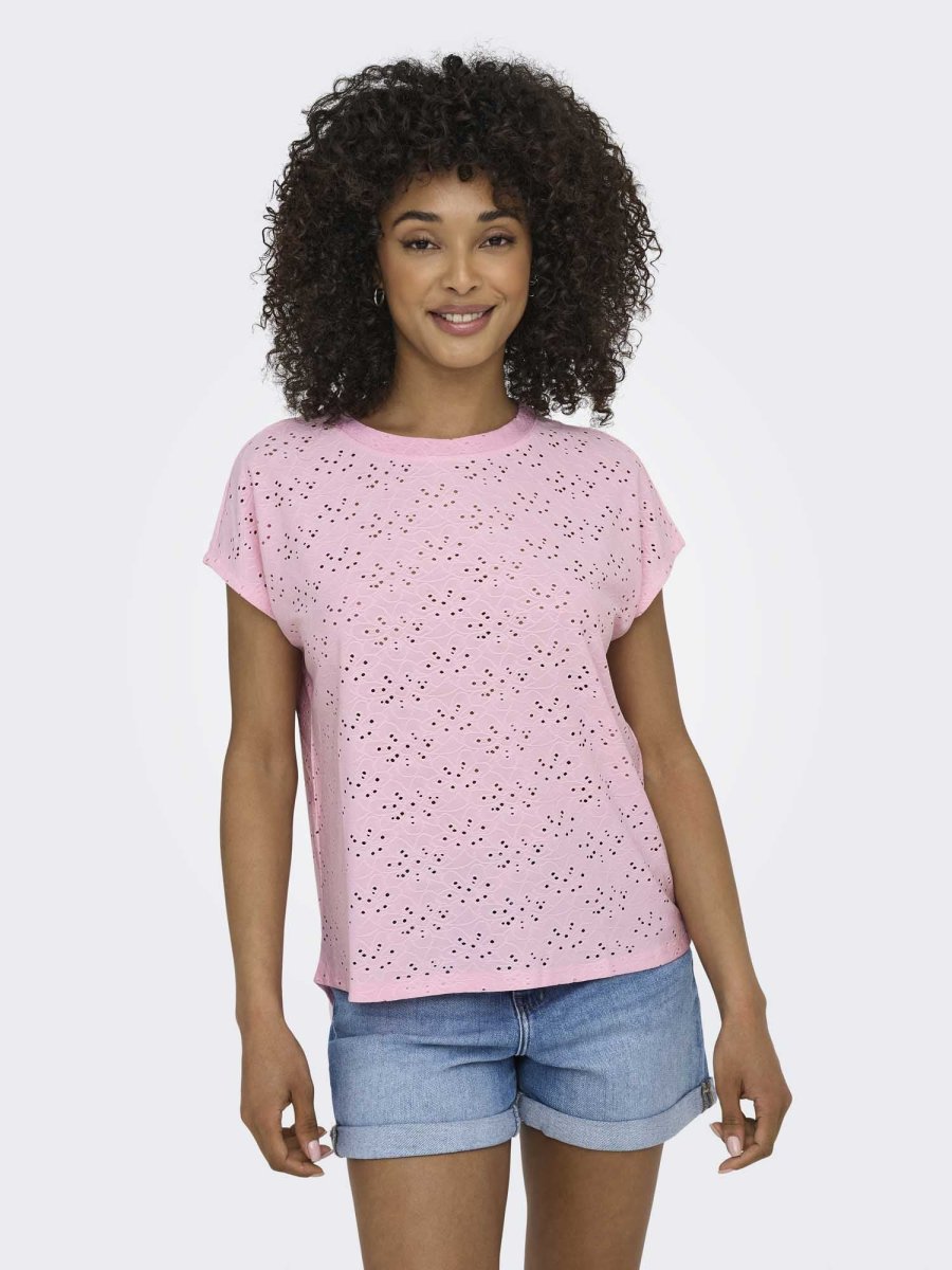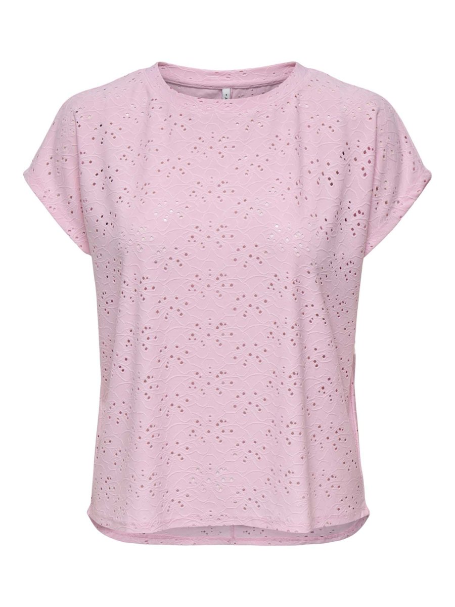 Only 15231005 Roseate Spoonbill – una t-shirt unisex leggera e raffinata con maniche corte, caratterizzata da un delicato design traforato che la rende unica nel suo genere.