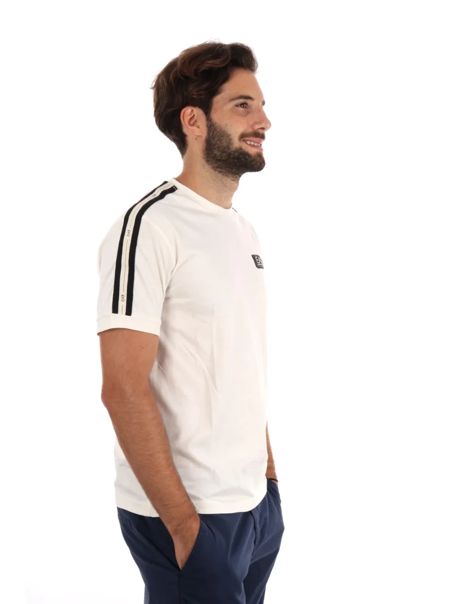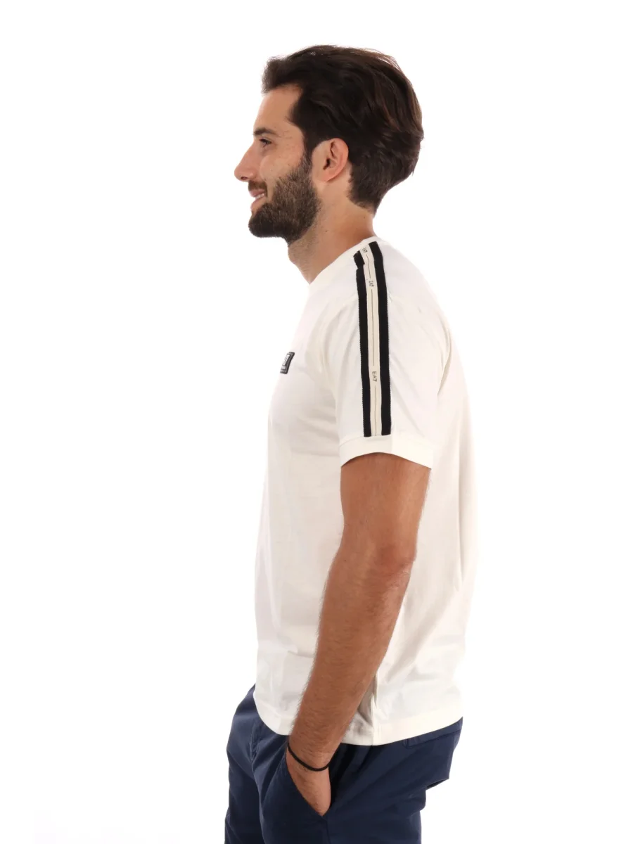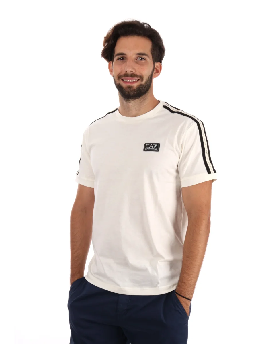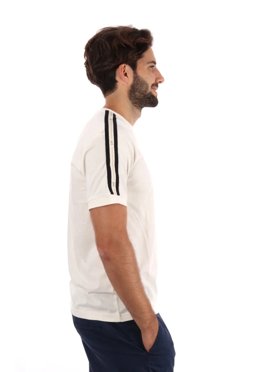 La t-shirt da uomo EA7 Emporio Armani in color vaniglia è il perfetto equilibrio tra eleganza e stile sportivo per la nuova collezione autunno/inverno. Il design distintivo presenta maniche logate con il logo EA7, un dettaglio che aggiunge carattere e dinamismo al look senza essere eccessivo e classico girocollo.