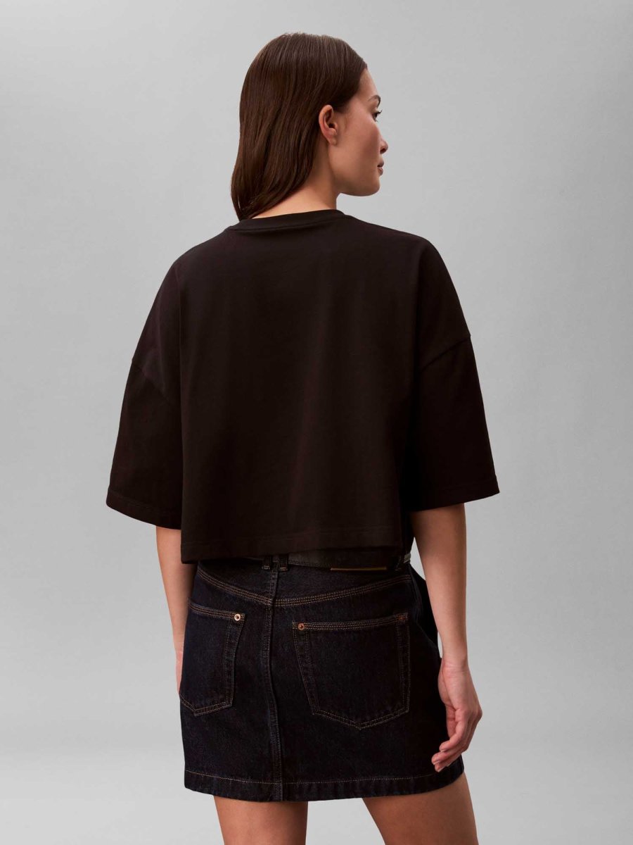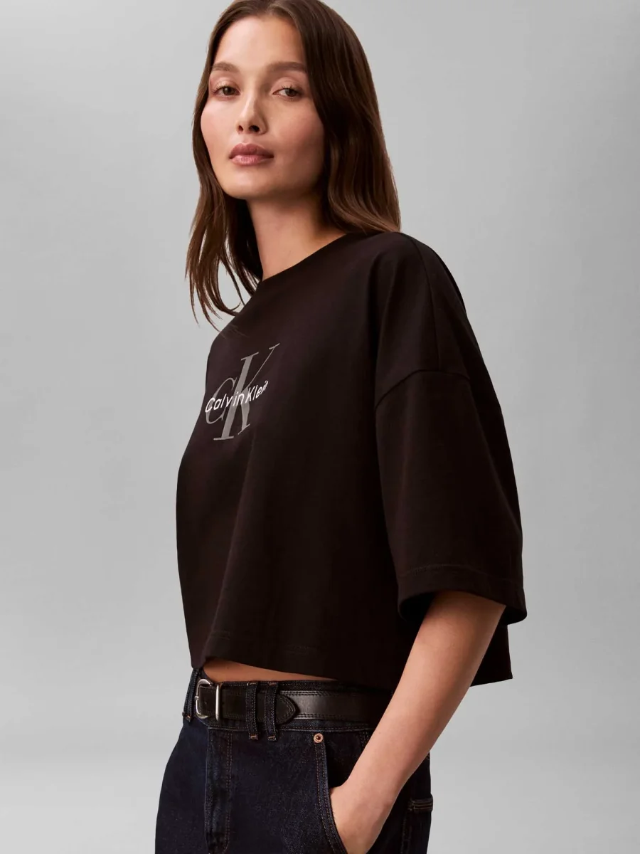 La t-shirt da donna Calvin Klein Jeans Boxy Fit della nuova collezione Primavera/Estate è un capo moderno e di tendenza, perfetto per look casual contemporanei. Realizzata in morbido cotone, garantisce comfort e traspirabilità durante tutta la giornata. Il modello presenta un girocollo classico, maniche corte e una vestibilità boxy, con linea ampia e leggermente squadrata per uno stile rilassato e attuale. Il design è valorizzato dal logo Calvin Klein stampato e ricamato sul petto, che dona un tocco distintivo e ricercato. Versatile e facile da abbinare, è ideale con jeans, pantaloni o gonne per outfit semplici ma di carattere.