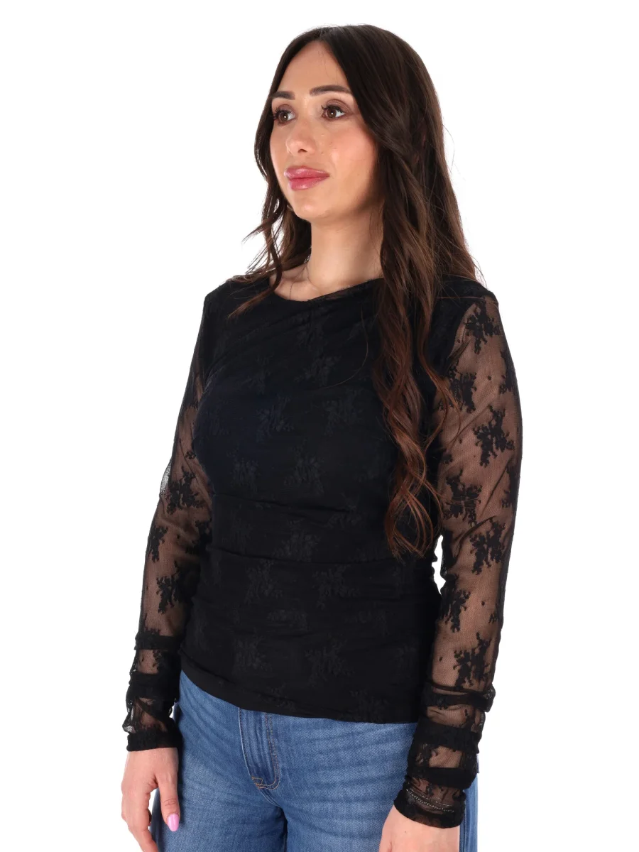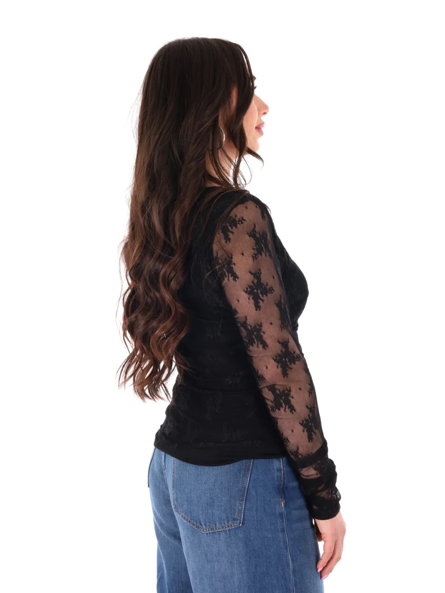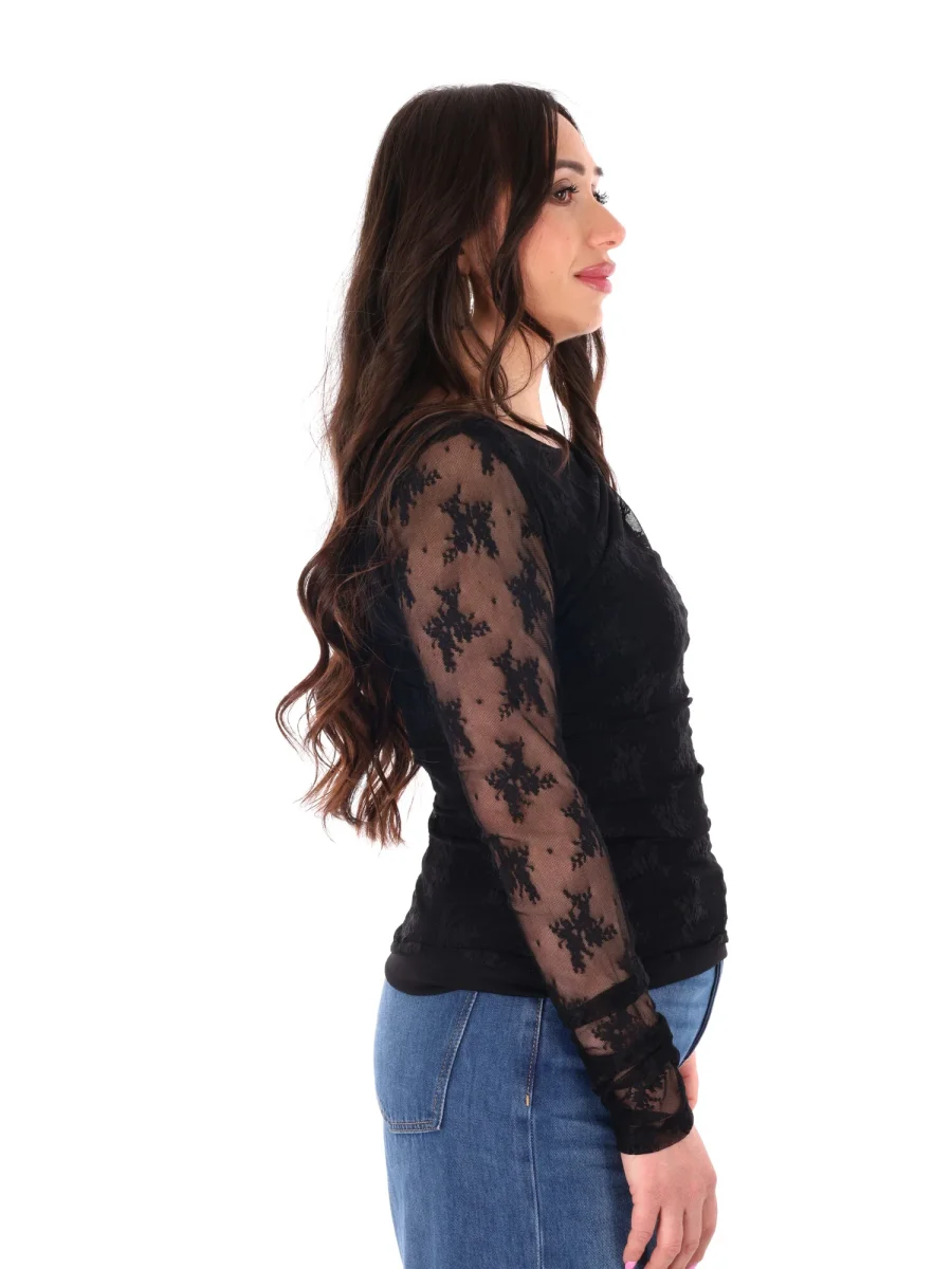 T-SHIRT NERA MISS LOVE A MANICHE LUNGHE IN PIZZO DA DONNA