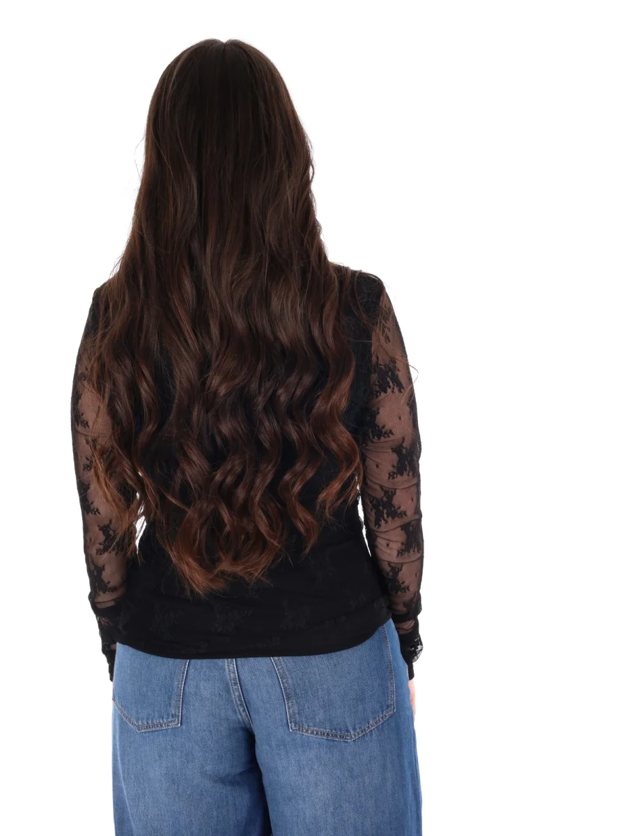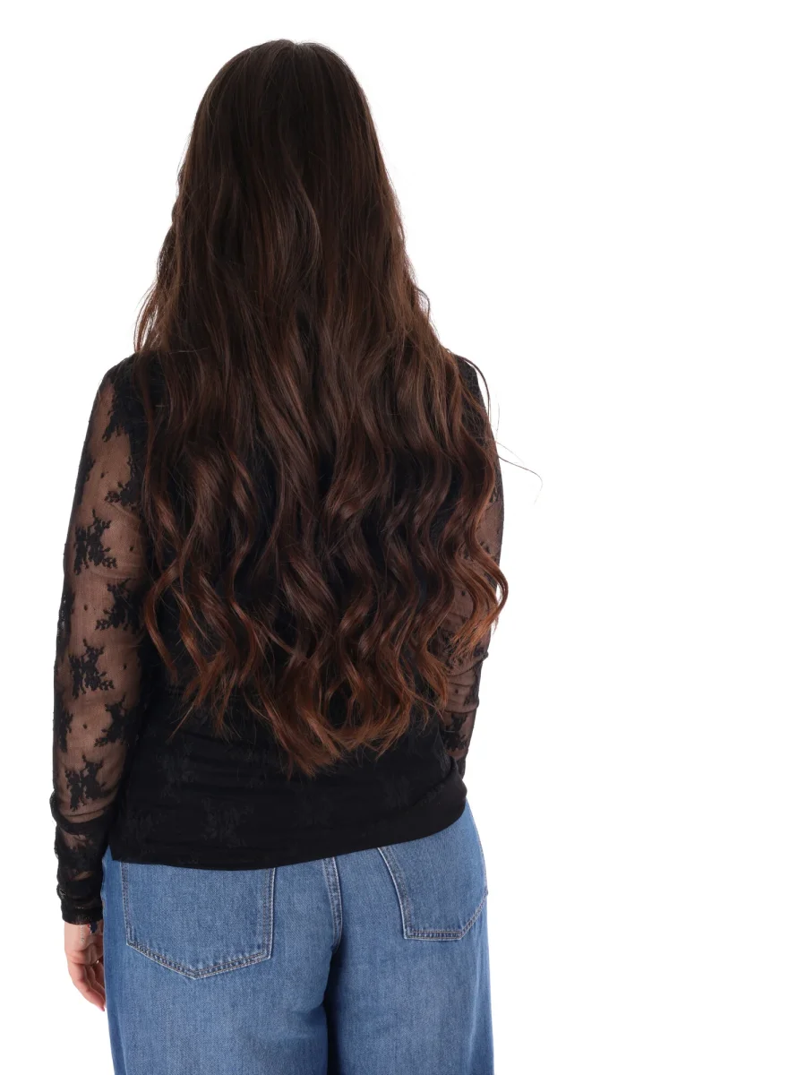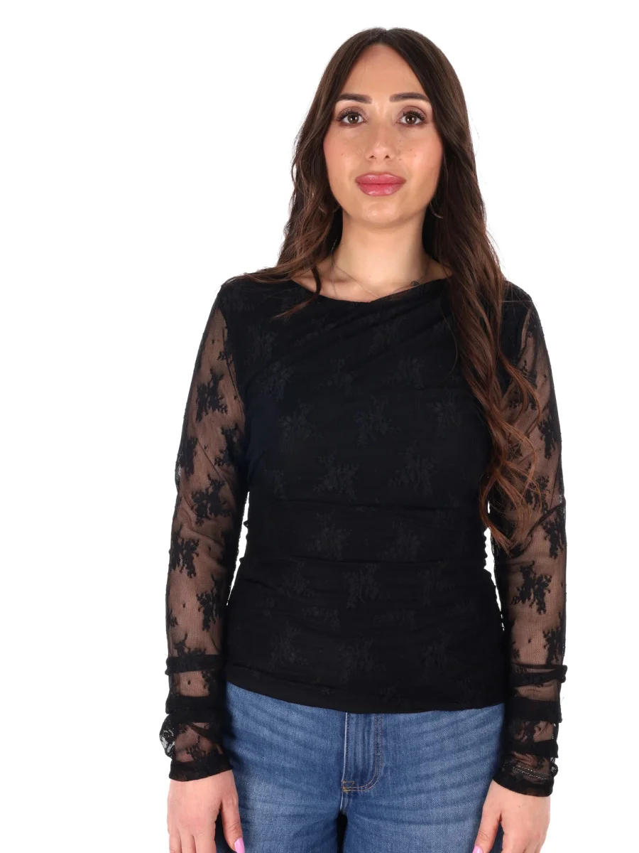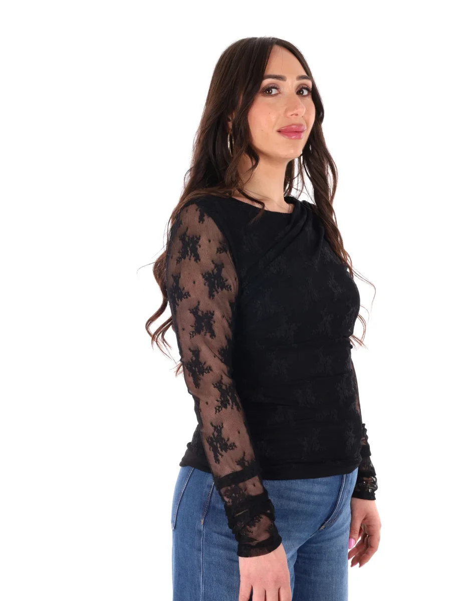 T-SHIRT NERA MISS LOVE A MANICHE LUNGHE IN PIZZO DA DONNA