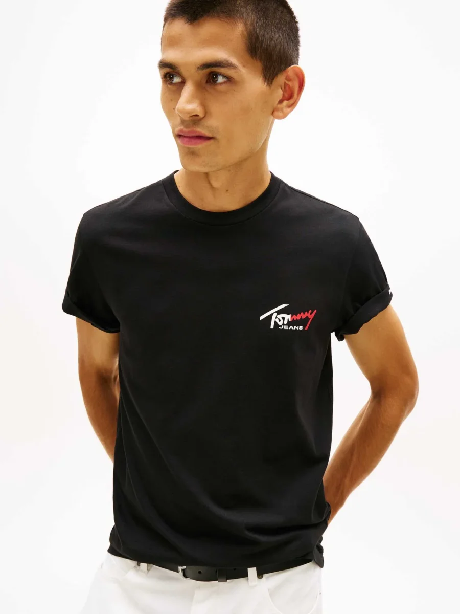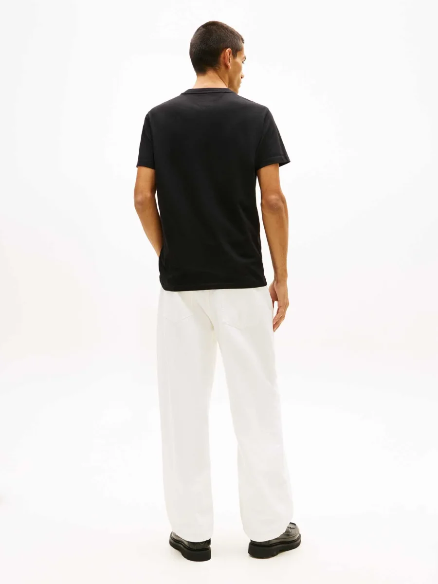 La T-shirt uomo Tommy Hilfiger Tommy Jeans della collezione Primavera/Estate unisce stile, comfort e sostenibilità grazie al cotone riciclato al 100%. Il design essenziale con collo girocollo e vestibilità regular fit garantisce comfort e praticità per l’uso quotidiano, mentre il logo Tommy Jeans ricamato sul petto aggiunge un tocco distintivo e moderno.