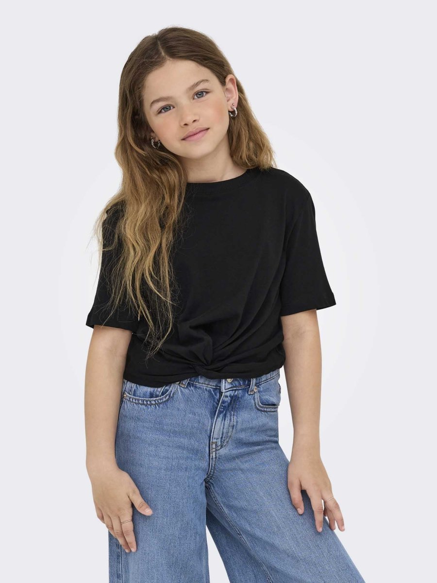 Only Jr 15352576 Black – T-shirt unisex adulto dal design moderno con un elegante dettaglio twist frontale che rende unico il capo. Perfetta per chi cerca uno stile fresco e contemporaneo.