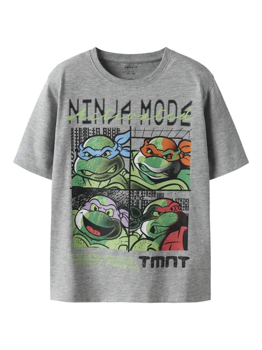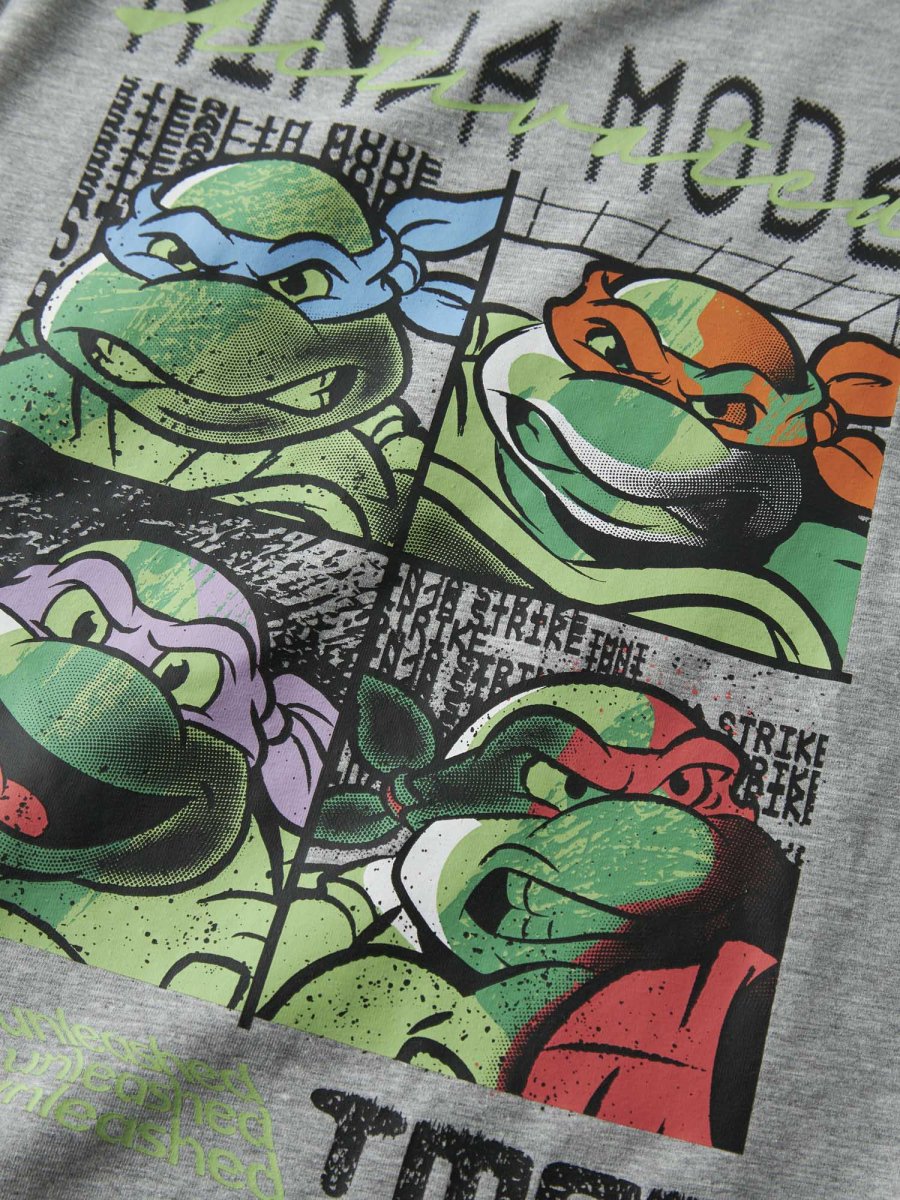 Name It T-shirt Ninja Turtles – una maglietta unisex caratterizzata da una stampa divertente delle quattro tartarughe ninja in colori vivaci come blu, arancione, viola e rosso. Il testo “Ninja Mode” con effetto grafico dona un tocco di originalità.