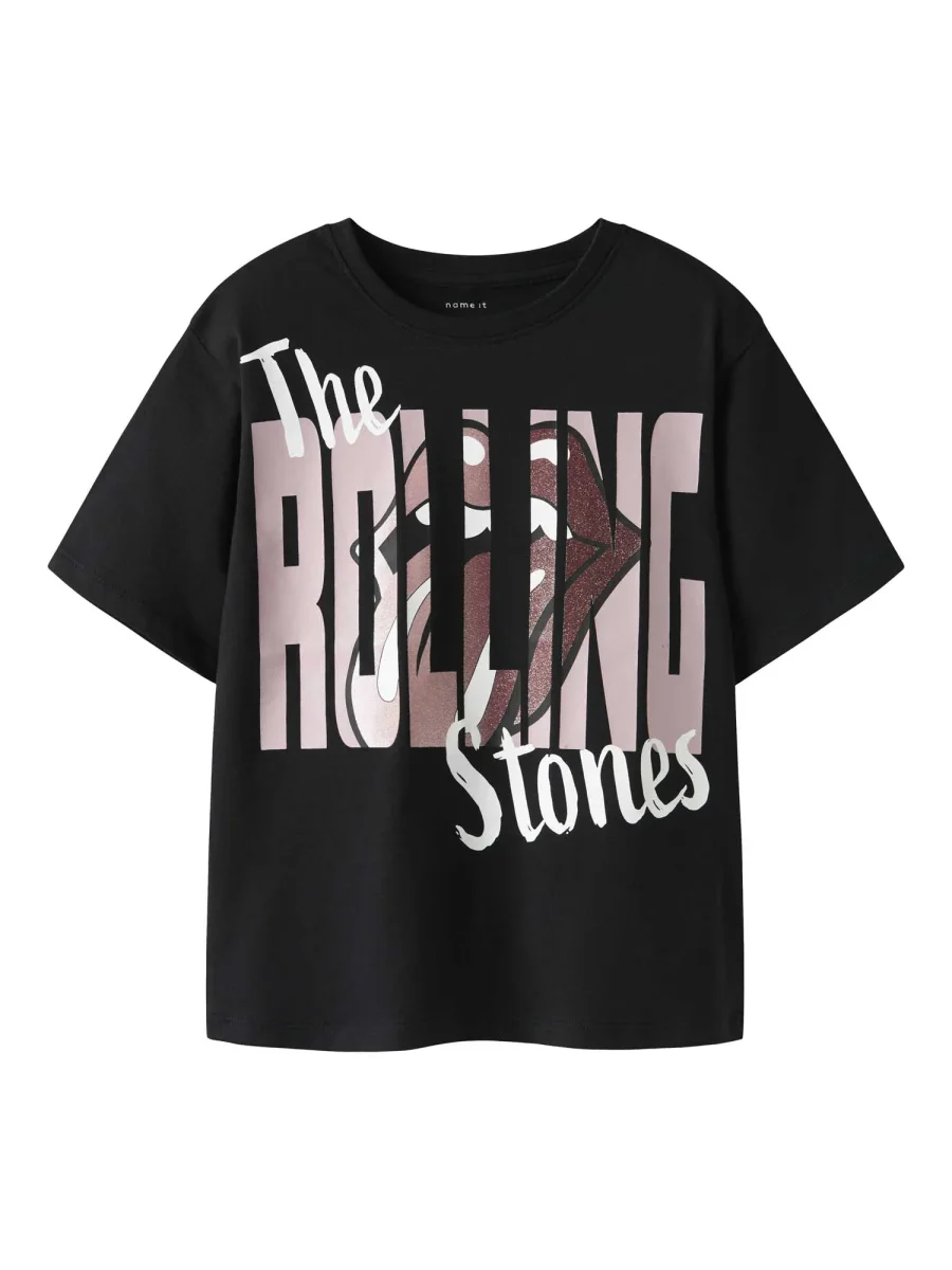 Name It T-shirt Rolling Stones – Una t-shirt unisex in colore nero, caratterizzata da una stampa frontale con il famoso logo lingua dei Rolling Stones, perfetta per aggiungere un tocco rock al tuo guardaroba.