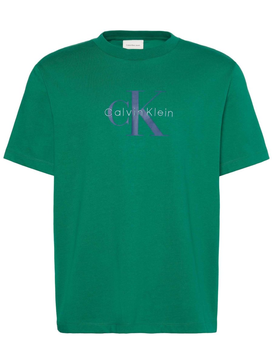 T-SHIRT VERDE CALVIN KLEIN JEANS CON LOGO RICAMATO DA UOMO