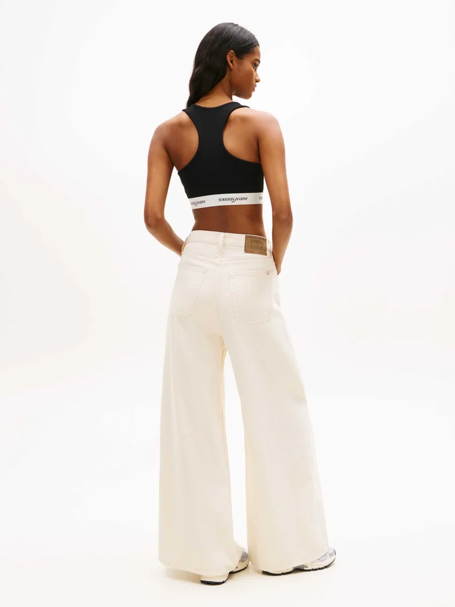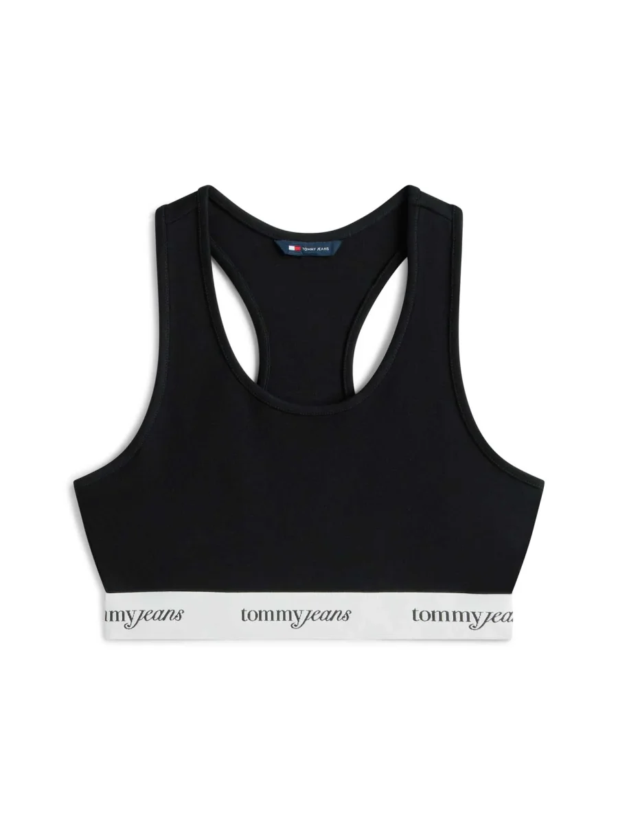 La canotta crop nera da donna Tommy Jeans è un top sportivo dal design minimalista con spalline larghe e banda elastica con logo, perfetto per chi ama uno stile sportivo e funzionale.