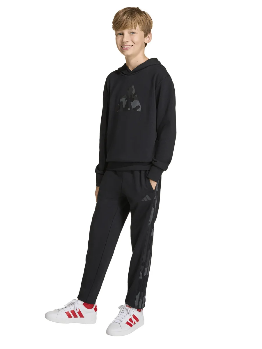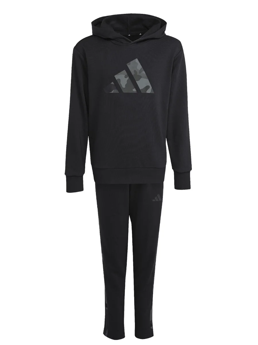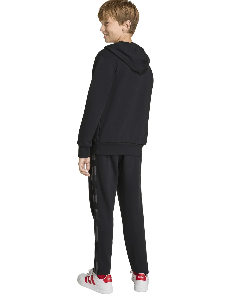 La tuta nera da bambino firmata adidas, composta da felpa e pantalone, unisce comfort, praticità e stile sportivo in un unico completo. Realizzata in tessuto morbido e traspirante, assicura una vestibilità confortevole che accompagna ogni movimento, rendendola ideale per la scuola, il tempo libero o le attività sportive.