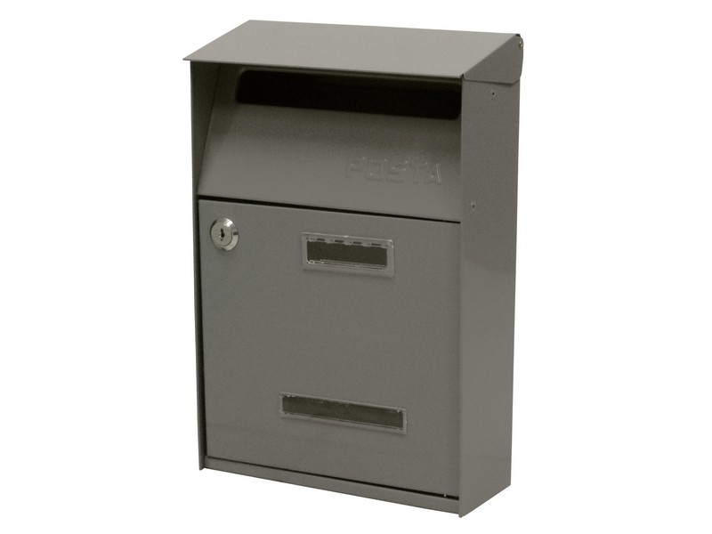 In acciaio, serratura a cilindro con 2 chiavi, tetto parapioggia,NLmm. 210x85x305 h.