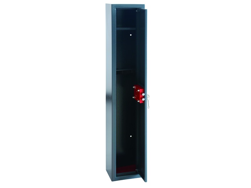 In acciaio verniciato con polvere epossidica, serratura con chiave a doppia mappa a 2 mandate, 2 catenacci ? mm. 18. Mensola interna, fori per l?ancoraggio a parete e a pavimento, moquette sul fondo.NLPorta con parete anteriore da mm. 2.NLNL3 postiNLcod. 44863 mm. 245x205x1350 h cf/pz 1