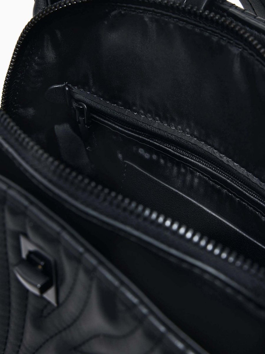 L’interno, completamente foderato, è organizzato in tre scomparti funzionali: uno centrale con chiusura a cerniera, uno con chiusura magnetica e uno frontale con chiusura a girello, permettendo di tenere tutto in ordine senza rinunciare alla comodità.